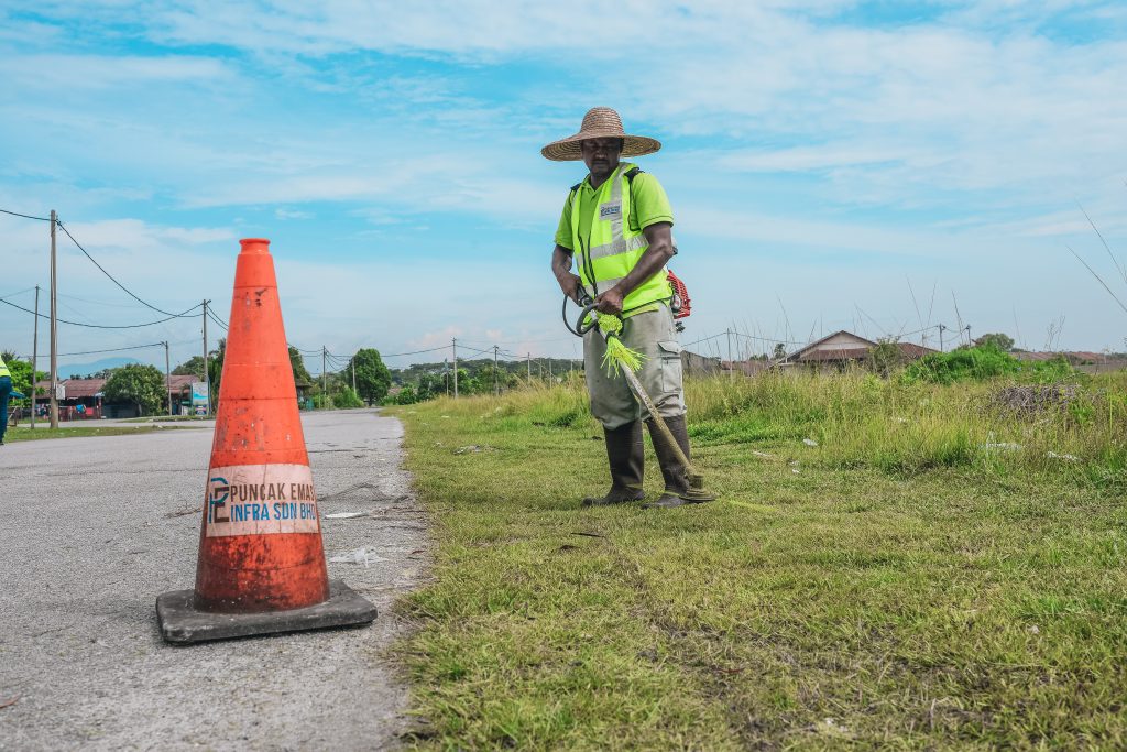 • Maintenance includes all types of grass, shrubs, and wild plants found along road shoulders, road reserves, medians, roundabouts, pedestrian walkways, concrete posts, paved areas, back lanes, and side lanes.
